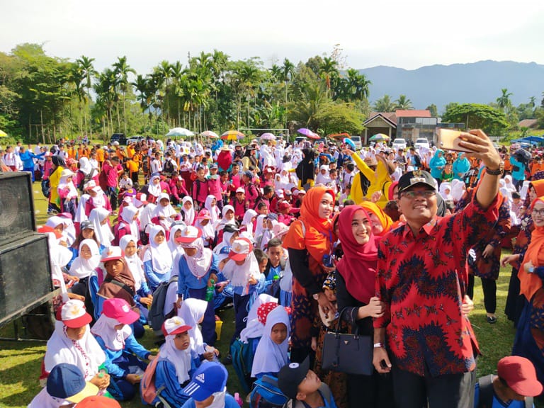 Irfendi Arbi bersama ribuan murid siswa Sekolah Dasar (SD) di Kabupaten